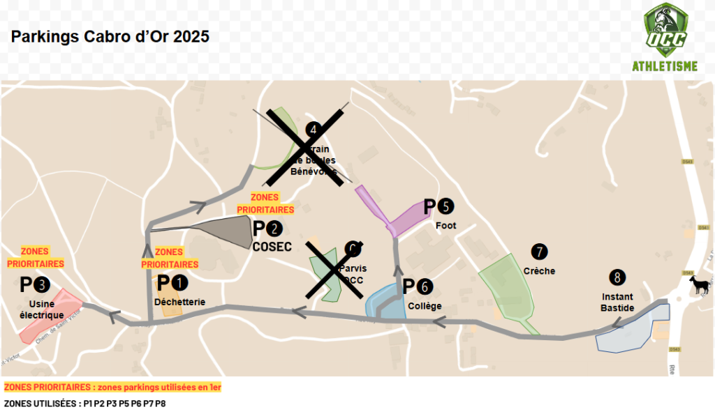INFOS JOUR J DÉPART DES COURSES : 5km : 9h3015km : 10h1010km : 10h206,5km : 10h30 RETRAIT DOSSARDS et REMISE TSHIRT : Samedi 11 OCTOBRE : 15h/19h00Dimanche 12 OCTOBRE : 7h30/8h45 Lieu : COSEC PIERRE CHARPIN – 13480 Cabriès – 690 av Raymond Martin, Complexe sportif Raymond Martin PARKING LE JOUR J : Horaire d’arrivée conseillé : dès 7h30Prenez vos dispositions FERMETURE TOTALE DES ROUTES 9h00 (concerne toutes les distances)Plusieurs zones parking seront mises à disposition, nos bénévoles seront là pour vous guider. Food-Trucks présents sur place (salés – sucré) TSHIRT FINISHER PARKING LE JOUR J : Horaire d’arrivée conseillé : dès 7h30 Prenez vos dispositions FERMETURE TOTALE DES ROUTES 9h00 (concerne toutes les distances) Plusieurs zones parking seront mises à disposition, nos bénévoles seront là pour vous guider. LA CABRO D’OR :12 OCTOBRE 2025Complexe sportif Raymond Martin, 690 Av Raymond Martin4 Distances : – 5km– 10km– 15km– 6,5km la Cabriessienne (ouverte à toutes et tous ) FERMETURE DES ROUTES à 9H00 !Merci de prendre vos dispositions PAGE FB https://www.facebook.com/OCCAthle INSCRIPTIONS CONTACTS occcourseapied@gmail.com
